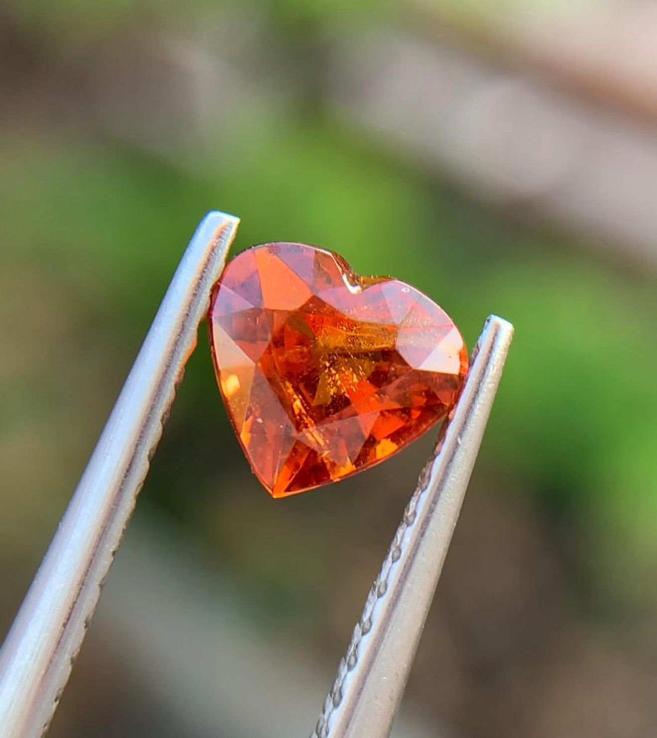 This enchanting heart-shaped spessartite garnet is a rare and romantic expression of natural beauty. With precise proportions of 5.5 x 6.0 x 3.8 mm and a weight of 1.00 carat, it carries a graceful presence while showcasing remarkable craftsmanship in its cut.