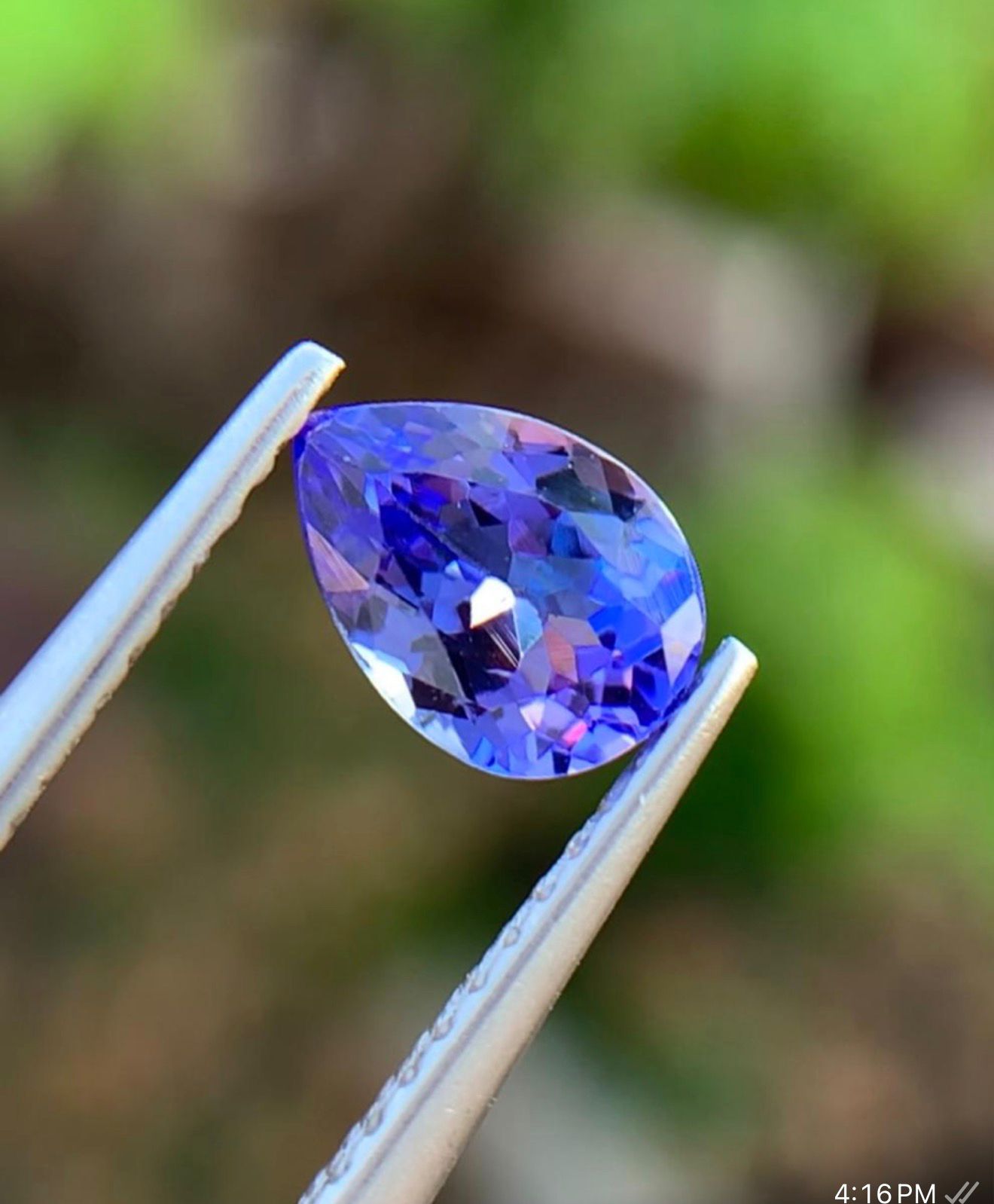0.93 carat pear-shaped tanzanite featuring a vivid violet-blue hue and excellent luster. With its elegant shape and vibrant sparkle, this gem offers a graceful and refined look—perfect for unique, high-end jewelry designs.